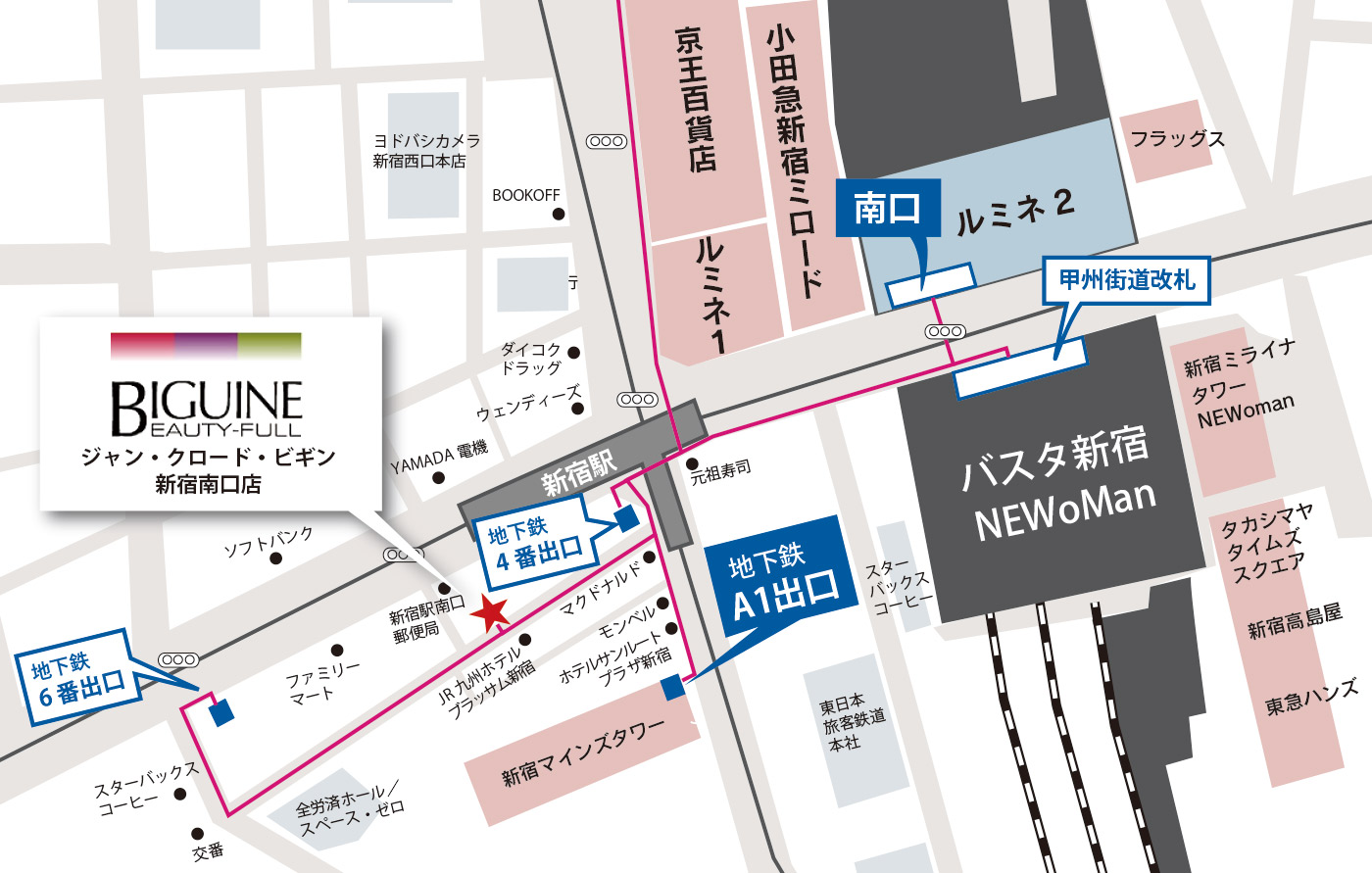 約50mほど道沿いに進むと右手にジャン・クロード・ビギン新宿南口店があります。